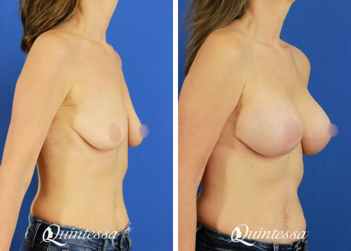 This patient is 5’3 and 110lbs. She received a bilateral silicone breast augmentation using Natrelle soft touch 335cc full profile implants with a breast lift