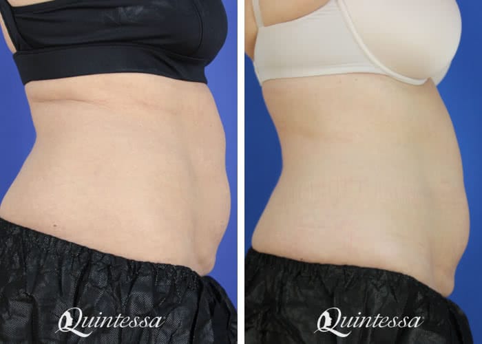This 53-year-old patient underwent three CoolSculpting sessions on the abdomen. Photos were taken eight weeks after the final treatment to show results.
