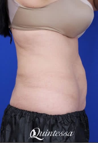 This 56-year-old patient received three CoolSculpting sessions on the abdomen. Photos were taken eight weeks after the final treatment to show results.