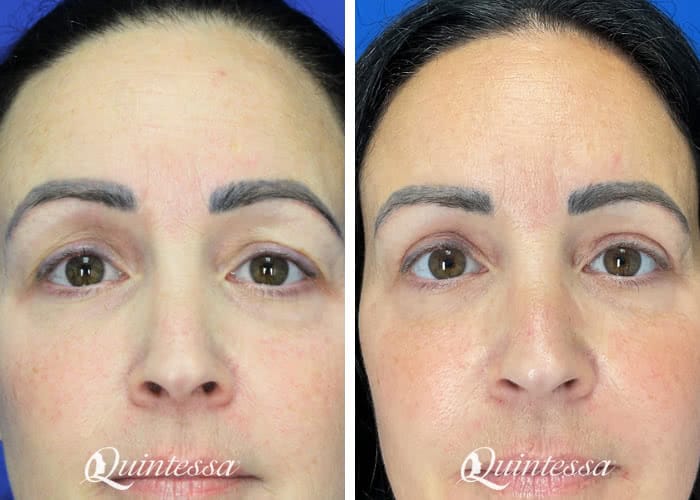 45 year old patient who underwent an upper blepharoplasty. She is 5’7″ and 185lbs.