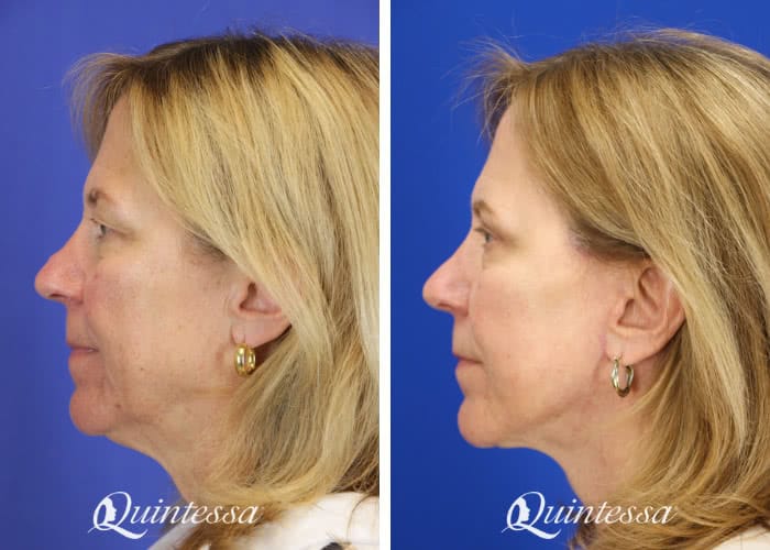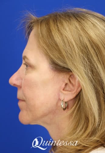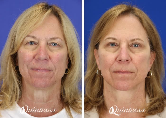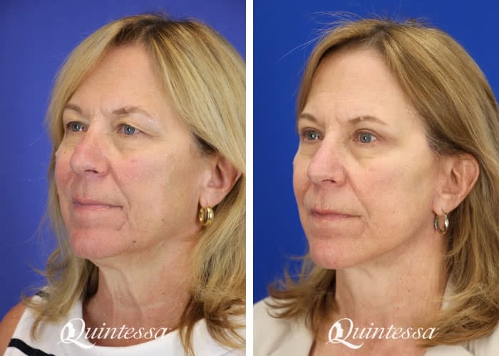 The patient received an upper blepharoplasty, lower transconjunctival blepharoplasty, mini lift, and platysmaplasty. Age: 70