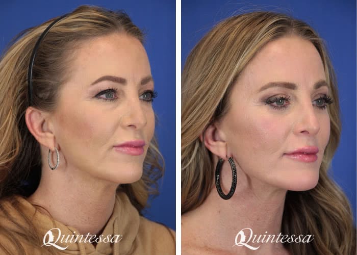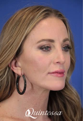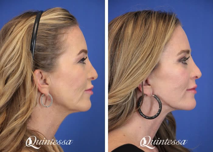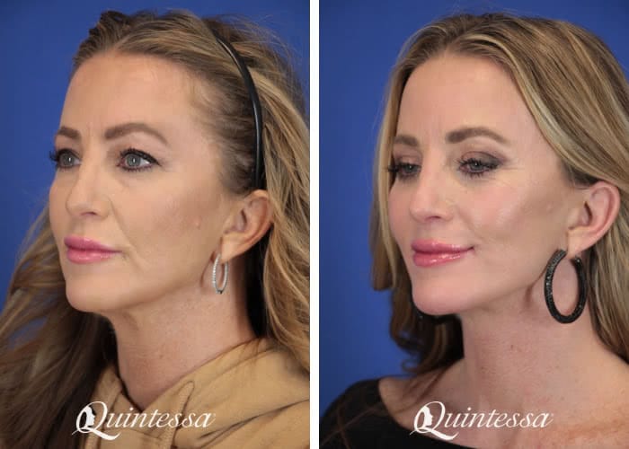 Patient received an upper blepharoplasty, lower transconjunctival blepharoplasty with skin pinch, mini lift, and platysmaplasty. Age: 52