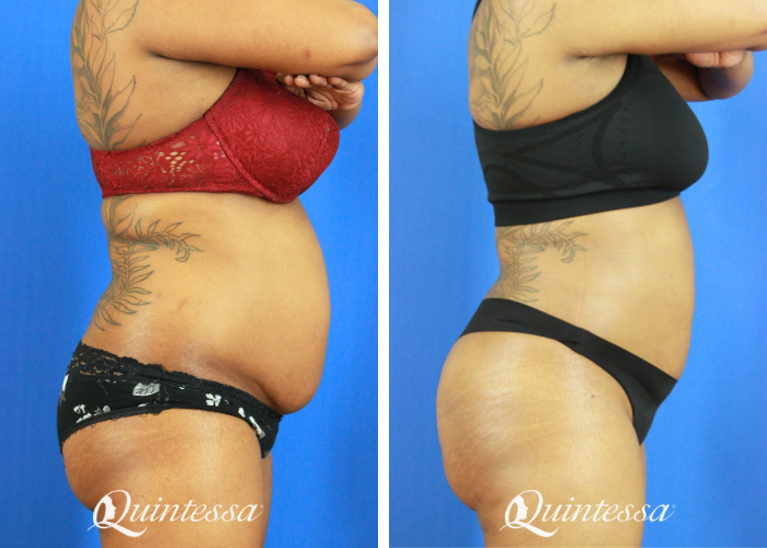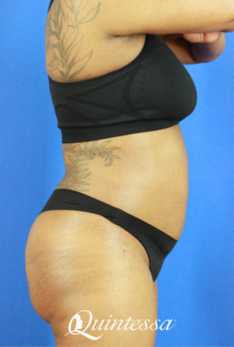 This patient is 5’2 and 145 pounds. She received circumferential (360) liposuction with fat transfer to butt (BBL).