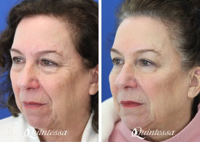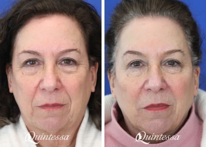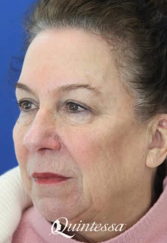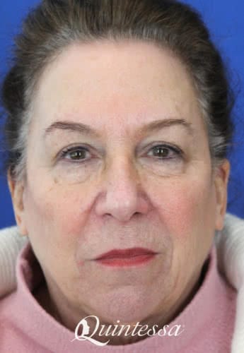 This 71-year-old patient received filler in the cheeks, chin, and smile lines to smooth wrinkles, lift the lower face, and restore natural volume. Results shown four weeks after treatment.