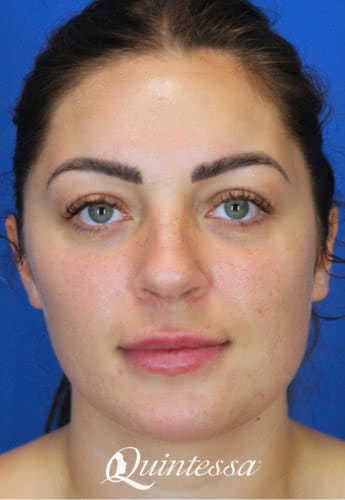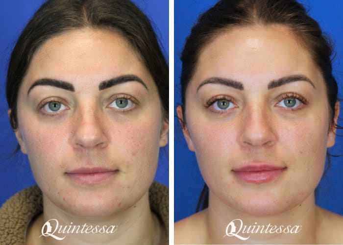 This 30-year-old patient received a combination filler treatment for full-face rejuvenation, including volume restoration in the cheeks, tear trough correction to refresh under the eyes, lip enhancement, and contouring of the jawline and chin.