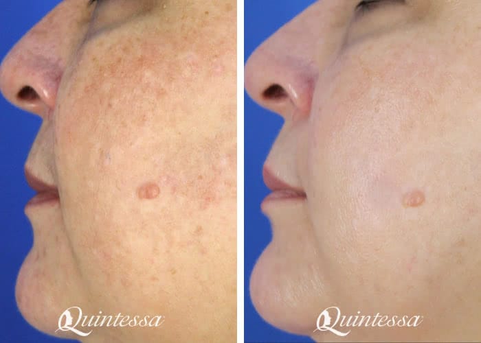 This 50-year-old patient received a Halo treatment to address melasma. Photos were taken four weeks after the procedure to show results.