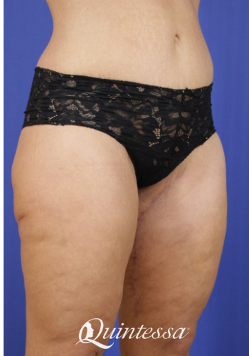 This patient is 5’5”, 250 lbs. She received a thighplasty.
