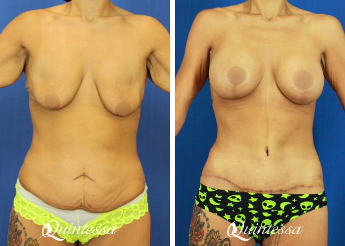 Patient is 5’7” 150 lbs. She received a torsoplasty and bilateral silicone breast augmentation with Natrelle soft touch 375cc moderate profile implants with breast lift.
